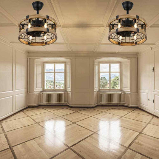 Bella Depot 18 in. Metal Black Caged Reversible Ceiling Fan w/ Lights and Remote